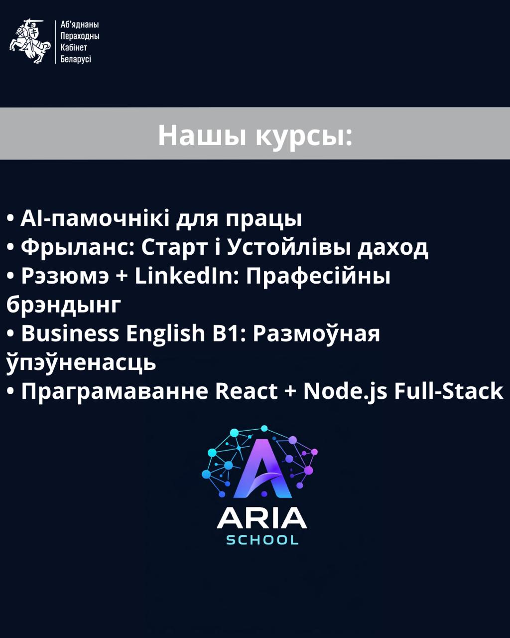Калі ты сутыкаешся з фінансавымі цяжкасцямі, хочаш атрымаць новую кваліфікацыю і стаць больш фінансава незалежнай — падавай заяўку на сайце www.ariaschool.org. Навучанне цалкам бясплатнае для беларусак.